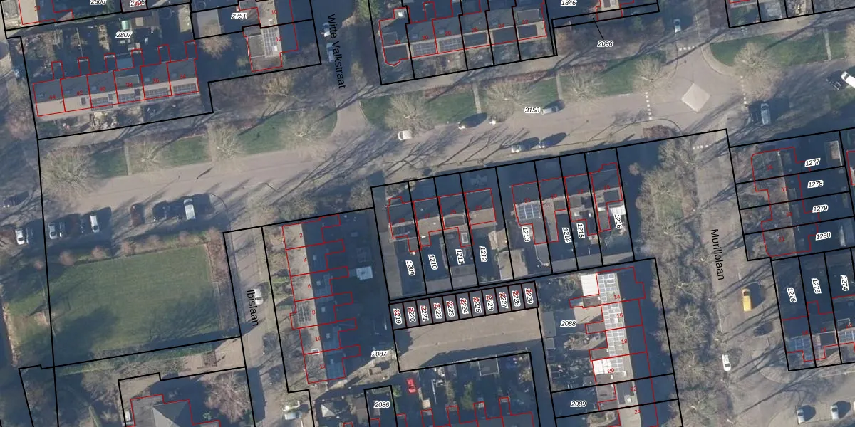 Gebruik de zoekbalk of klik op een perceel voor informatie over de adressen binnen dit perceel.