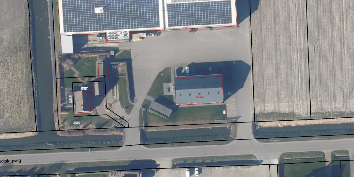 Het perceel waarop Grootslagweg 19-M staat heeft een oppervlakte van 4,1 ha. Dit is een zeer groot perceel. De perceeloppervlakte wordt geregistreerd door het Kadaster. Gedetailleerde informatie over de maten van dit perceel kunt u vinden in het rapport Kadastrale kaart met maatvoering van Grootslagweg 19-M.