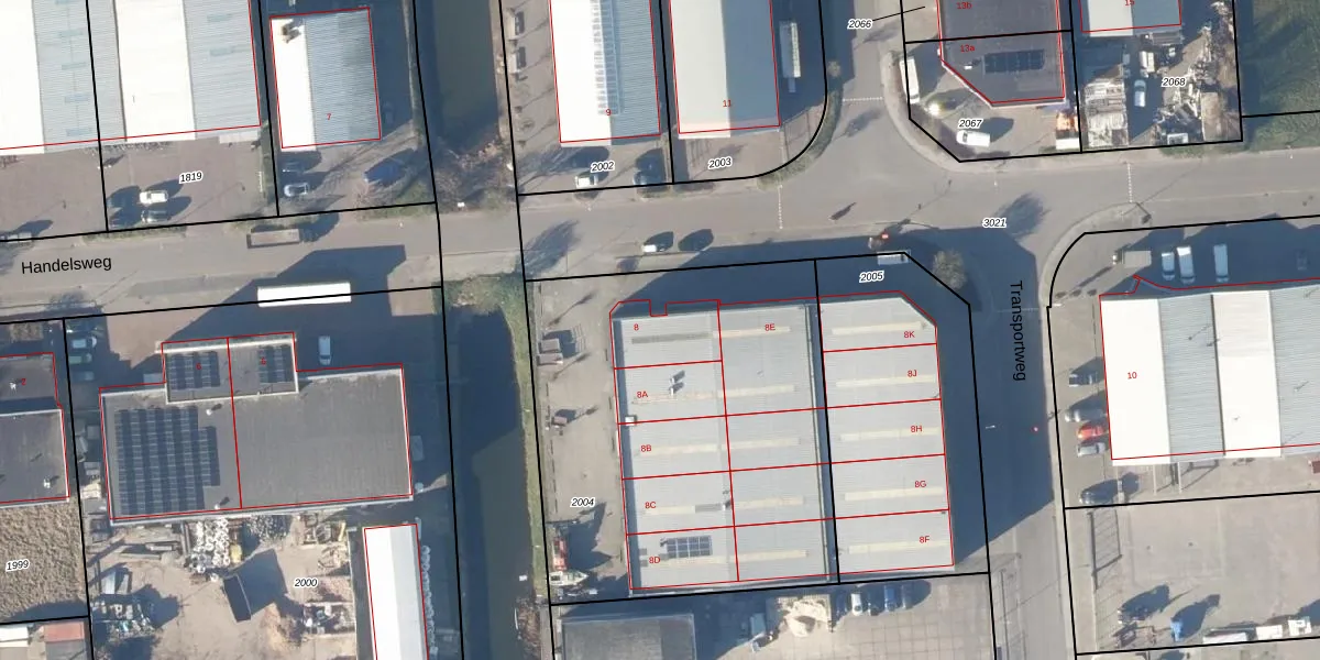 Het perceel waarop Handelsweg 8 staat heeft een oppervlakte van 2165 m². Dit is een zeer groot perceel. De perceeloppervlakte wordt geregistreerd door het Kadaster. Gedetailleerde informatie over de maten van dit perceel kunt u vinden in het rapport Kadastrale kaart met maatvoering van Handelsweg 8.