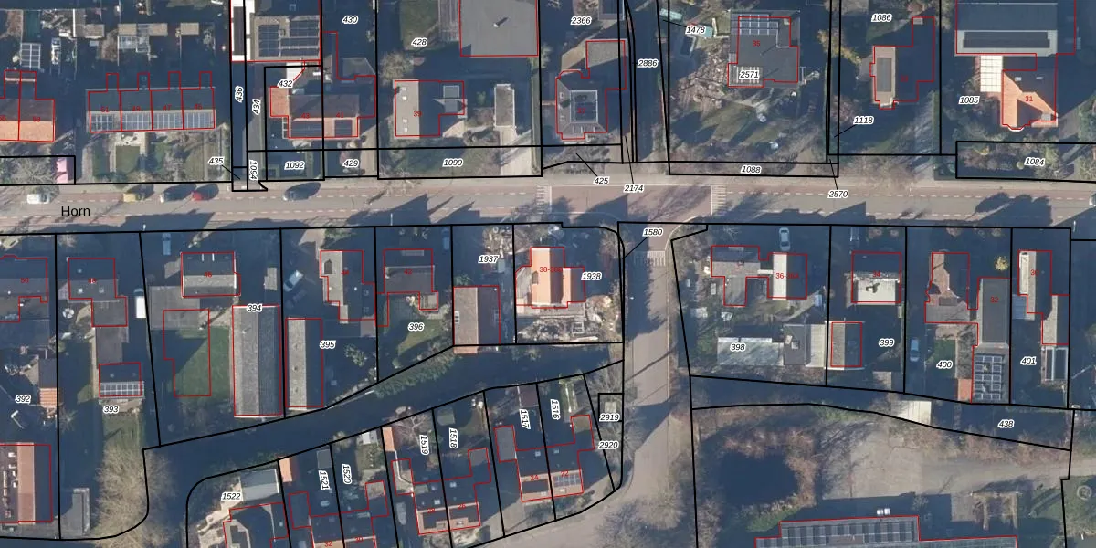 Het perceel waarop Horn 38 staat heeft een oppervlakte van 411 m². Dit is een groot perceel. De perceeloppervlakte wordt geregistreerd door het Kadaster. Gedetailleerde informatie over de maten van dit perceel kunt u vinden in het rapport Kadastrale kaart met maatvoering van Horn 38.