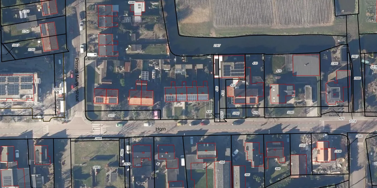 Het perceel waarop Horn 47 staat heeft een oppervlakte van 6158 m². Dit is een zeer groot perceel. De perceeloppervlakte wordt geregistreerd door het Kadaster. Gedetailleerde informatie over de maten van dit perceel kunt u vinden in het rapport Kadastrale kaart met maatvoering van Horn 47.