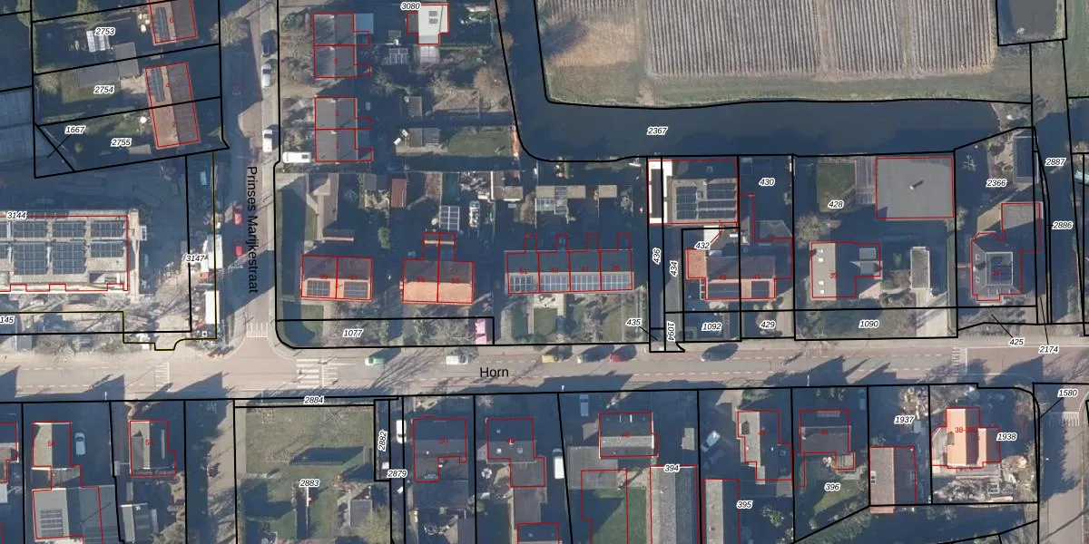 Het perceel waarop Horn 49 staat heeft een oppervlakte van 6158 m². Dit is een zeer groot perceel. De perceeloppervlakte wordt geregistreerd door het Kadaster. Gedetailleerde informatie over de maten van dit perceel kunt u vinden in het rapport Kadastrale kaart met maatvoering van Horn 49.