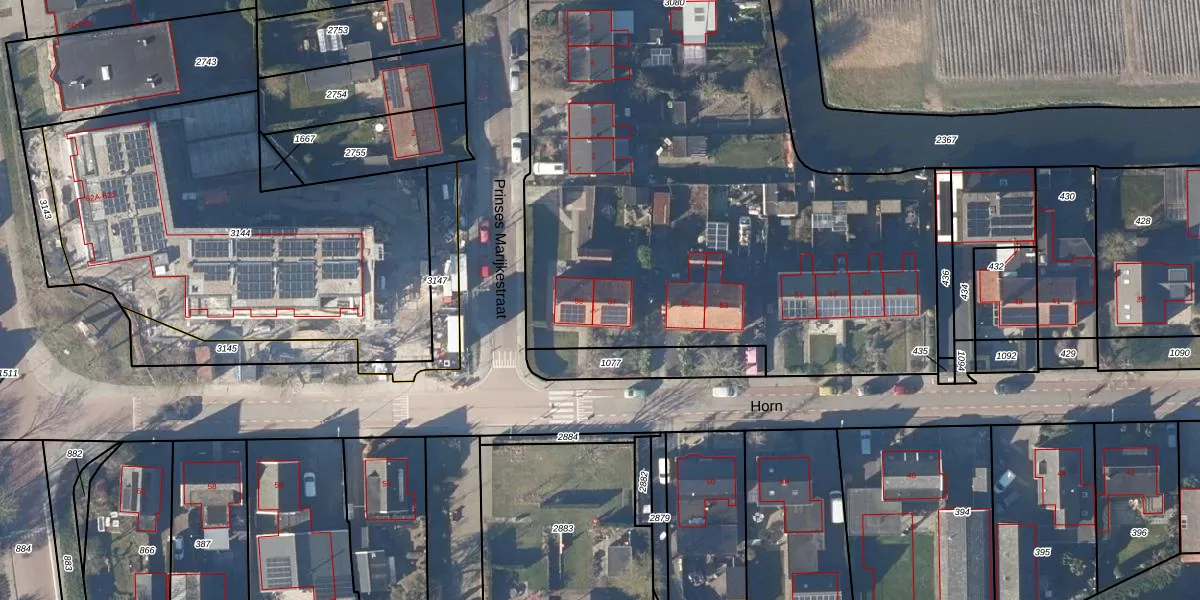 Het perceel waarop Horn 57 staat heeft een oppervlakte van 6158 m². Dit is een zeer groot perceel. De perceeloppervlakte wordt geregistreerd door het Kadaster. Gedetailleerde informatie over de maten van dit perceel kunt u vinden in het rapport Kadastrale kaart met maatvoering van Horn 57.