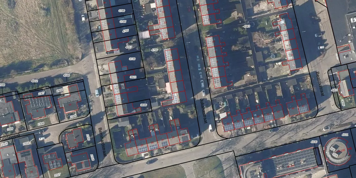 Julianastraat 3 is gelegen op kadastraal perceel ADK00K4756. Deze kadastrale aanduiding is uniek en wordt gebruikt door het Kadaster om eigendomsrechten en andere zakelijke rechten vast te leggen. Het perceel maakt onderdeel uit van de kadastrale gemeente Andijk.
