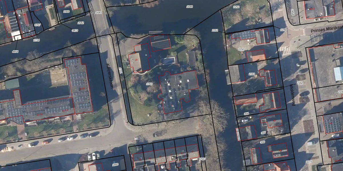 Het perceel waarop Keizerskroon 1 staat heeft een oppervlakte van 2345 m². Dit is een zeer groot perceel. De perceeloppervlakte wordt geregistreerd door het Kadaster. Gedetailleerde informatie over de maten van dit perceel kunt u vinden in het rapport Kadastrale kaart met maatvoering van Keizerskroon 1.