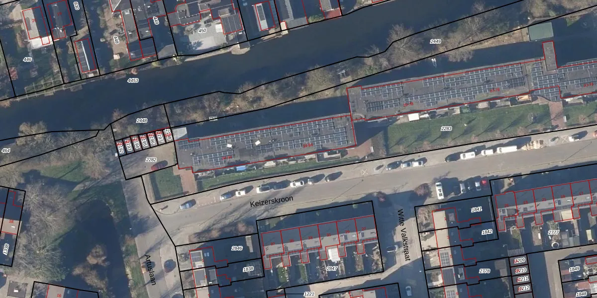 Het perceel waarop Keizerskroon 36 staat heeft een oppervlakte van 5785 m². Dit is een zeer groot perceel. De perceeloppervlakte wordt geregistreerd door het Kadaster. Gedetailleerde informatie over de maten van dit perceel kunt u vinden in het rapport Kadastrale kaart met maatvoering van Keizerskroon 36.