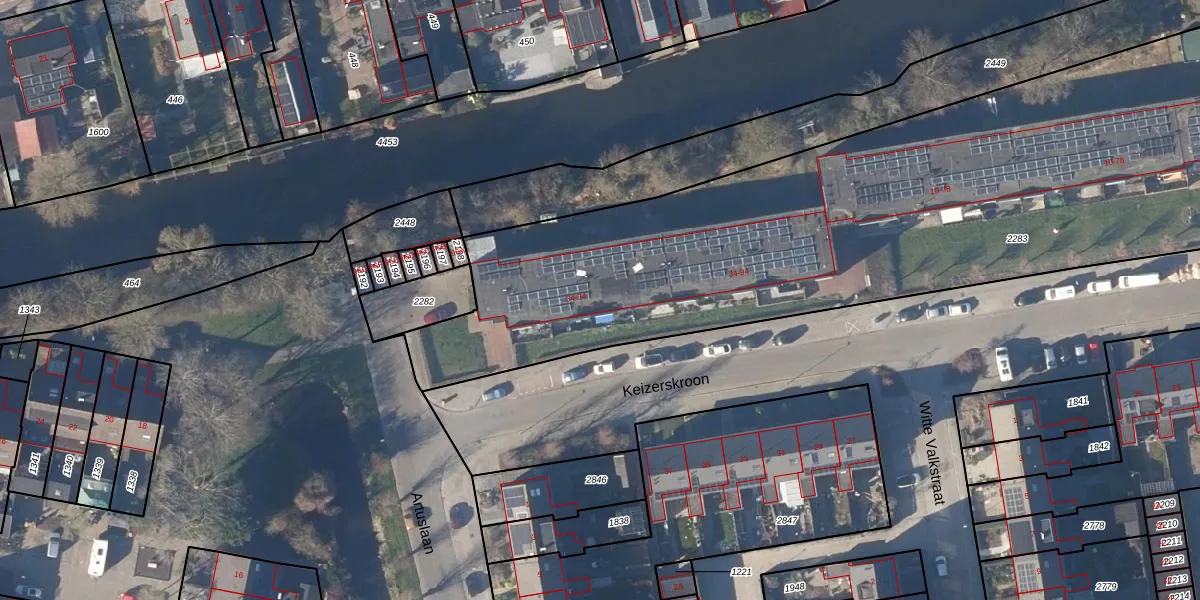Het perceel waarop Keizerskroon 42 staat heeft een oppervlakte van 5785 m². Dit is een zeer groot perceel. De perceeloppervlakte wordt geregistreerd door het Kadaster. Gedetailleerde informatie over de maten van dit perceel kunt u vinden in het rapport Kadastrale kaart met maatvoering van Keizerskroon 42.