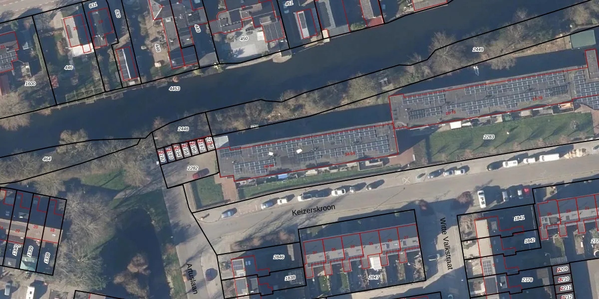 Het perceel waarop Keizerskroon 88 staat heeft een oppervlakte van 5785 m². Dit is een zeer groot perceel. De perceeloppervlakte wordt geregistreerd door het Kadaster. Gedetailleerde informatie over de maten van dit perceel kunt u vinden in het rapport Kadastrale kaart met maatvoering van Keizerskroon 88.