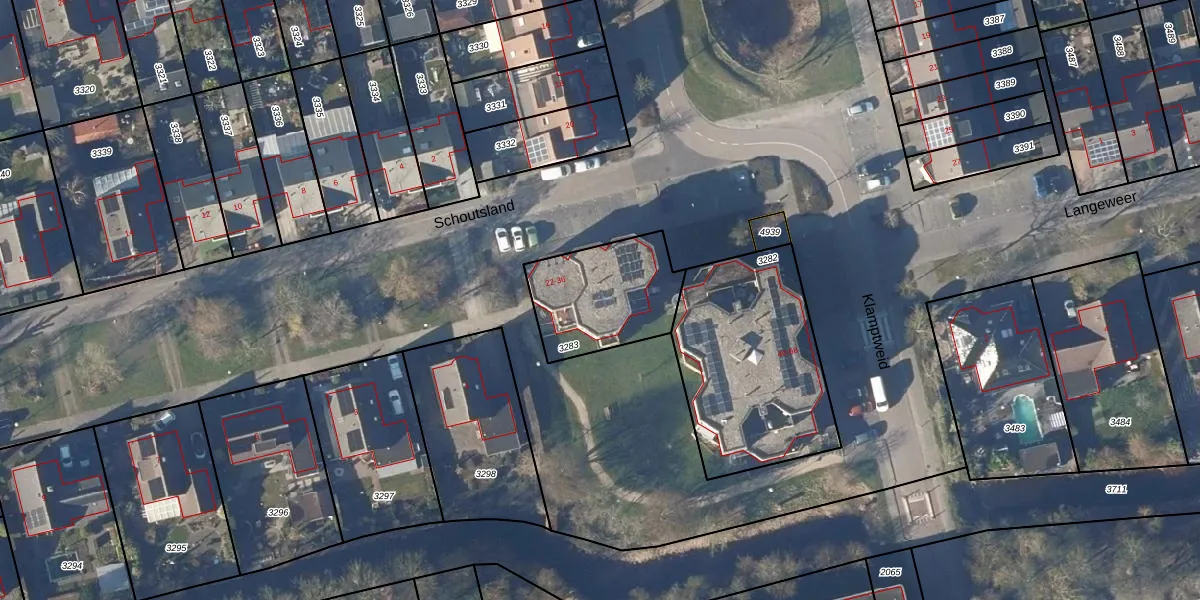 Het perceel waarop Klamptweid 34 staat heeft een oppervlakte van 404 m². Dit is een groot perceel. De perceeloppervlakte wordt geregistreerd door het Kadaster. Gedetailleerde informatie over de maten van dit perceel kunt u vinden in het rapport Kadastrale kaart met maatvoering van Klamptweid 34.