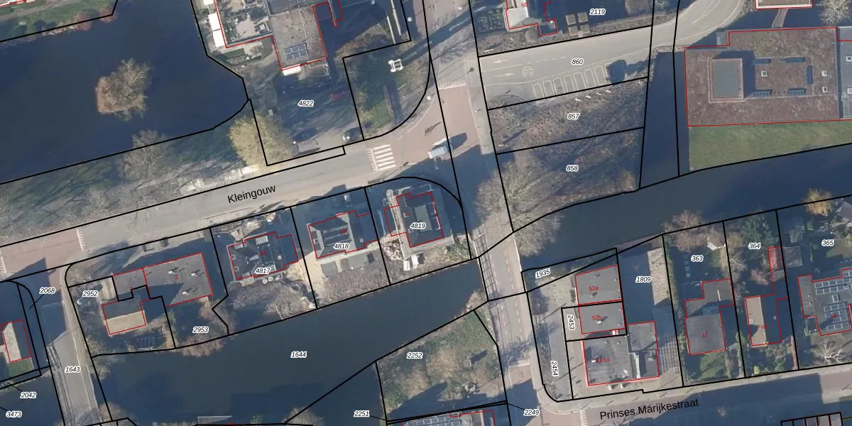 Het perceel waarop Kleingouw 1 staat heeft een oppervlakte van 434 m². Dit is een groot perceel. De perceeloppervlakte wordt geregistreerd door het Kadaster. Gedetailleerde informatie over de maten van dit perceel kunt u vinden in het rapport Kadastrale kaart met maatvoering van Kleingouw 1.
