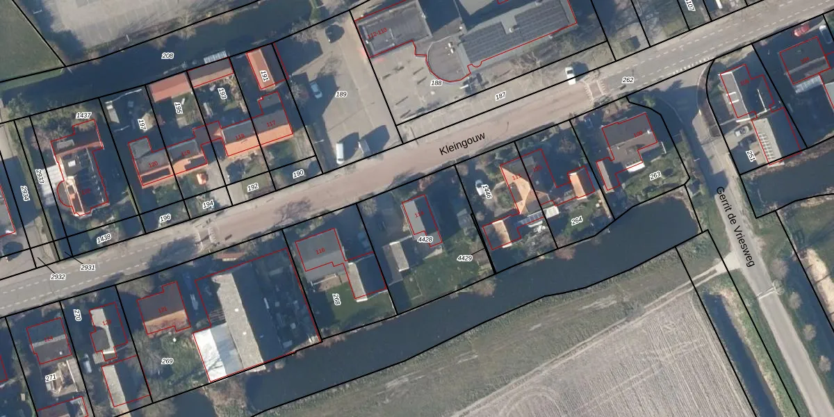 Het perceel waarop Kleingouw 114 staat heeft een oppervlakte van 716 m². Dit is een groot perceel. De perceeloppervlakte wordt geregistreerd door het Kadaster. Gedetailleerde informatie over de maten van dit perceel kunt u vinden in het rapport Kadastrale kaart met maatvoering van Kleingouw 114.