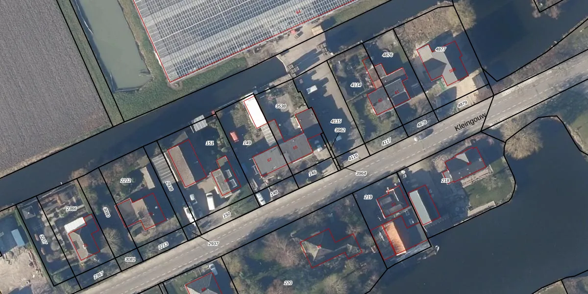Kleingouw 65 is gelegen op kadastraal perceel ADK00K3538. Deze kadastrale aanduiding is uniek en wordt gebruikt door het Kadaster om eigendomsrechten en andere zakelijke rechten vast te leggen. Het perceel maakt onderdeel uit van de kadastrale gemeente Andijk.