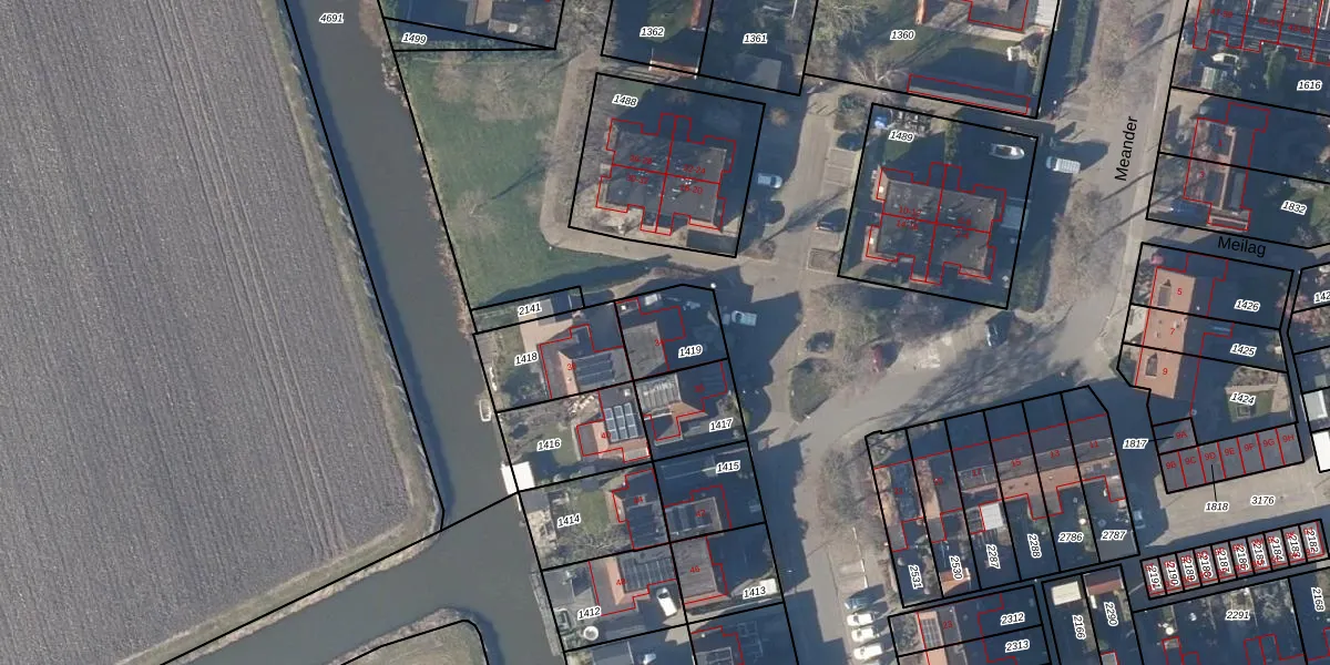 Het perceel waarop Meander 34 staat heeft een oppervlakte van 183 m². Dit is een middelgroot perceel. De perceeloppervlakte wordt geregistreerd door het Kadaster. Gedetailleerde informatie over de maten van dit perceel kunt u vinden in het rapport Kadastrale kaart met maatvoering van Meander 34.