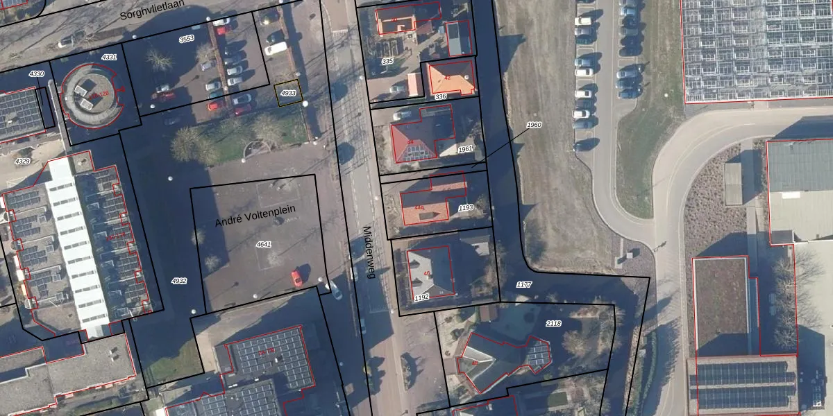 Het perceel waarop Middenweg 44-a staat heeft een oppervlakte van 350 m². Dit is een groot perceel. De perceeloppervlakte wordt geregistreerd door het Kadaster. Gedetailleerde informatie over de maten van dit perceel kunt u vinden in het rapport Kadastrale kaart met maatvoering van Middenweg 44-a.