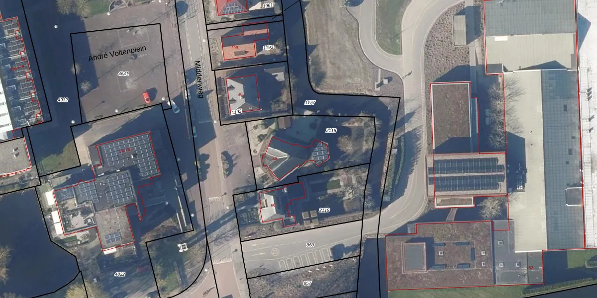 Gebruik de zoekbalk of klik op een perceel voor informatie over de adressen binnen dit perceel.
