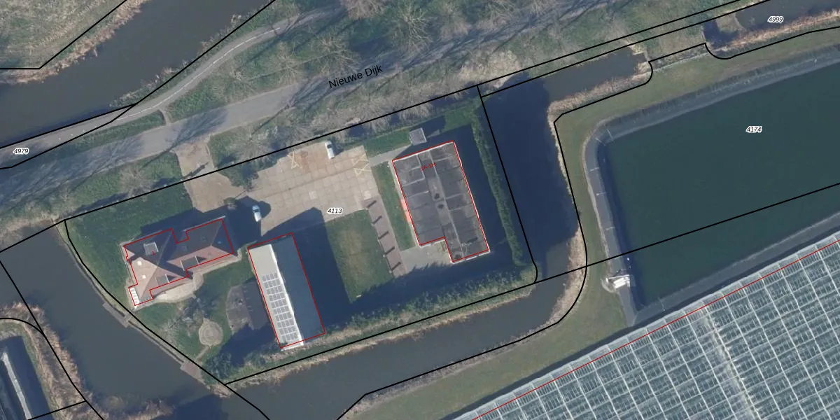 Het perceel waarop Nieuwe Dijk 1-G staat heeft een oppervlakte van 4625 m². Dit is een zeer groot perceel. De perceeloppervlakte wordt geregistreerd door het Kadaster. Gedetailleerde informatie over de maten van dit perceel kunt u vinden in het rapport Kadastrale kaart met maatvoering van Nieuwe Dijk 1-G.