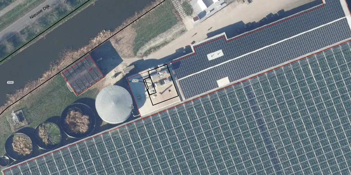 Het perceel waarop Nieuwe Dijk 15 staat heeft een oppervlakte van 9,0 ha. Dit is een zeer groot perceel. De perceeloppervlakte wordt geregistreerd door het Kadaster. Gedetailleerde informatie over de maten van dit perceel kunt u vinden in het rapport Kadastrale kaart met maatvoering van Nieuwe Dijk 15.