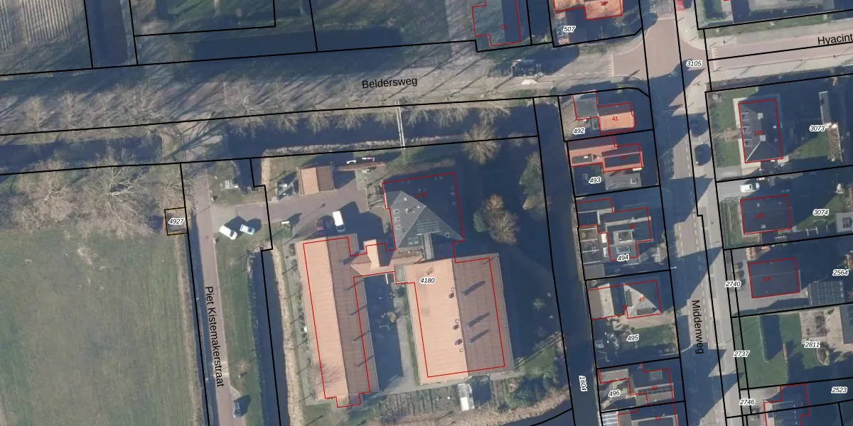 Het perceel waarop Piet Kistemakerstraat 20 staat heeft een oppervlakte van 4665 m². Dit is een zeer groot perceel. De perceeloppervlakte wordt geregistreerd door het Kadaster. Gedetailleerde informatie over de maten van dit perceel kunt u vinden in het rapport Kadastrale kaart met maatvoering van Piet Kistemakerstraat 20.