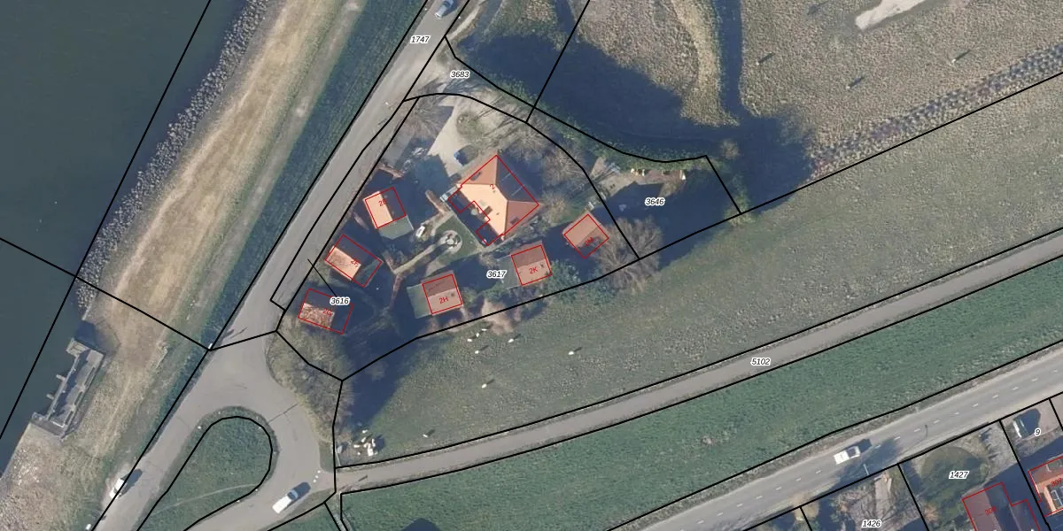 Het adres is gelegen op perceel 3617 in de sectie K en de kadastrale gemeente Andijk. De kadastrale aanduiding is aldus ADK00-K-3617. De gemiddelde perceelgrootte in Andijk is 8680,6 m². Dit perceel is kleiner: de perceeloppervlakte bedraagt 1984 m². De grootste perceeloppervlakte in de kadastrale gemeente is 23,96 km². De kleinste oppervlakte bedraagt 0 m². Op het perceel liggen in totaal 9 adressen. De huidige grenzen van het perceel zijn digitaal in de Basisregistratie Kadaster (BRK) geregistreerd op 23-01-2004.