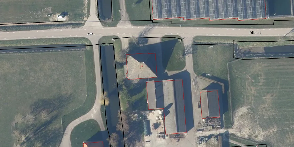Het perceel waarop Rikkert 10 staat heeft een oppervlakte van 2,9 ha. Dit is een zeer groot perceel. De perceeloppervlakte wordt geregistreerd door het Kadaster. Gedetailleerde informatie over de maten van dit perceel kunt u vinden in het rapport Kadastrale kaart met maatvoering van Rikkert 10.