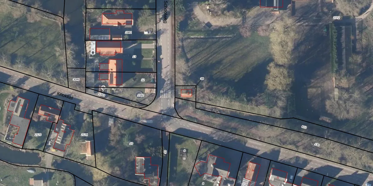 Schoolweg 9 is gelegen op kadastraal perceel ADK00L38. Deze kadastrale aanduiding is uniek en wordt gebruikt door het Kadaster om eigendomsrechten en andere zakelijke rechten vast te leggen. Het perceel maakt onderdeel uit van de kadastrale gemeente Andijk.