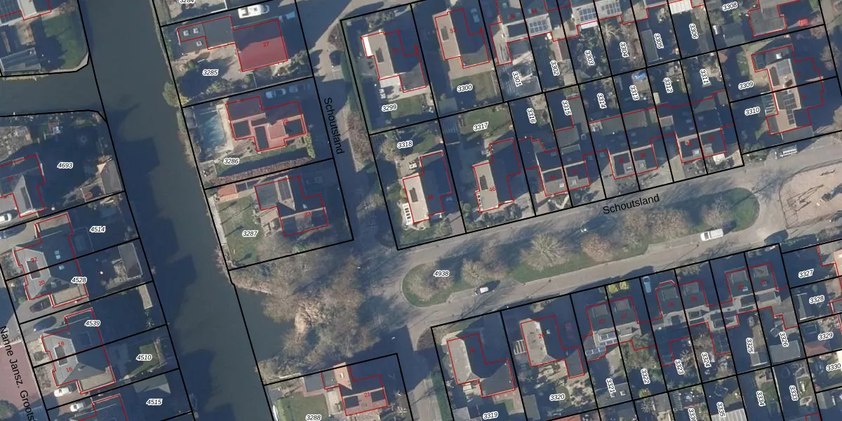 Het perceel waarop Schoutsland 48 staat heeft een oppervlakte van 476 m². Dit is een groot perceel. De perceeloppervlakte wordt geregistreerd door het Kadaster. Gedetailleerde informatie over de maten van dit perceel kunt u vinden in het rapport Kadastrale kaart met maatvoering van Schoutsland 48.