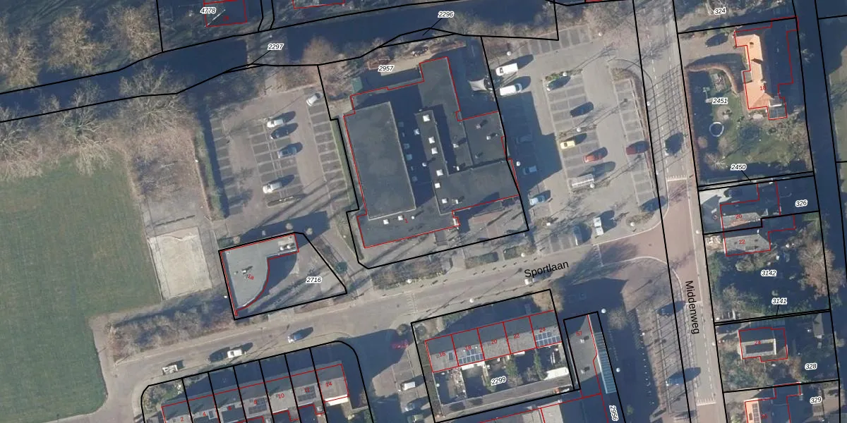 Het perceel waarop Sportlaan 1 staat heeft een oppervlakte van 1911 m². Dit is een zeer groot perceel. De perceeloppervlakte wordt geregistreerd door het Kadaster. Gedetailleerde informatie over de maten van dit perceel kunt u vinden in het rapport Kadastrale kaart met maatvoering van Sportlaan 1.