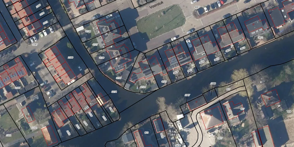 Het perceel waarop Voorstuk 35 staat heeft een oppervlakte van 389 m². Dit is een groot perceel. De perceeloppervlakte wordt geregistreerd door het Kadaster. Gedetailleerde informatie over de maten van dit perceel kunt u vinden in het rapport Kadastrale kaart met maatvoering van Voorstuk 35.