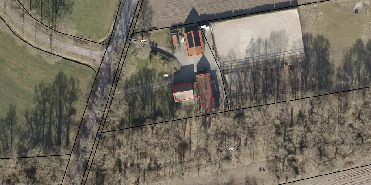 Het adres ligt op het perceel GBG00-H-557, dat zich in de kadastrale gemeente Gramsbergen bevindt. De gemiddelde perceelgrootte in Gramsbergen is 8786,08 m². Dit perceel is kleiner: de perceeloppervlakte bedraagt 2740 m². De grootste perceeloppervlakte in de kadastrale gemeente is 50,3 ha. De kleinste oppervlakte bedraagt 0 m². Er zijn geen andere adressen aanwezig op het perceel. In de Basisregistratie Kadaster (BRK) werden de grenzen van het perceel geregistreerd op 13-02-2001.