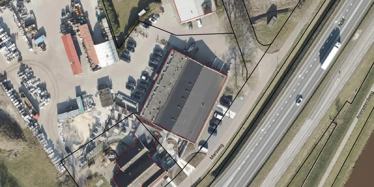 Het perceel waarop Marsweg 8 staat heeft een oppervlakte van 3,6 ha. Dit is een zeer groot perceel. De perceeloppervlakte wordt geregistreerd door het Kadaster. Gedetailleerde informatie over de maten van dit perceel kunt u vinden in het rapport Kadastrale kaart met maatvoering van Marsweg 8.
