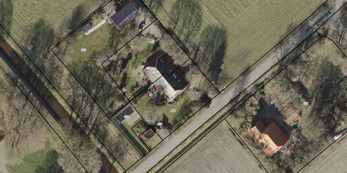 Anerveenseweg 48 is gelegen op kadastraal perceel GBG00K468. Deze kadastrale aanduiding is uniek en wordt gebruikt door het Kadaster om eigendomsrechten en andere zakelijke rechten vast te leggen. Het perceel maakt onderdeel uit van de kadastrale gemeente Gramsbergen.