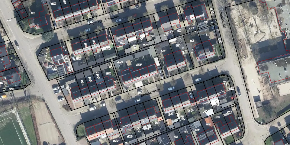 Het perceel waarop Beatrixstraat 14 staat heeft een oppervlakte van 700 m². Dit is een groot perceel. De perceeloppervlakte wordt geregistreerd door het Kadaster. Gedetailleerde informatie over de maten van dit perceel kunt u vinden in het rapport Kadastrale kaart met maatvoering van Beatrixstraat 14.
