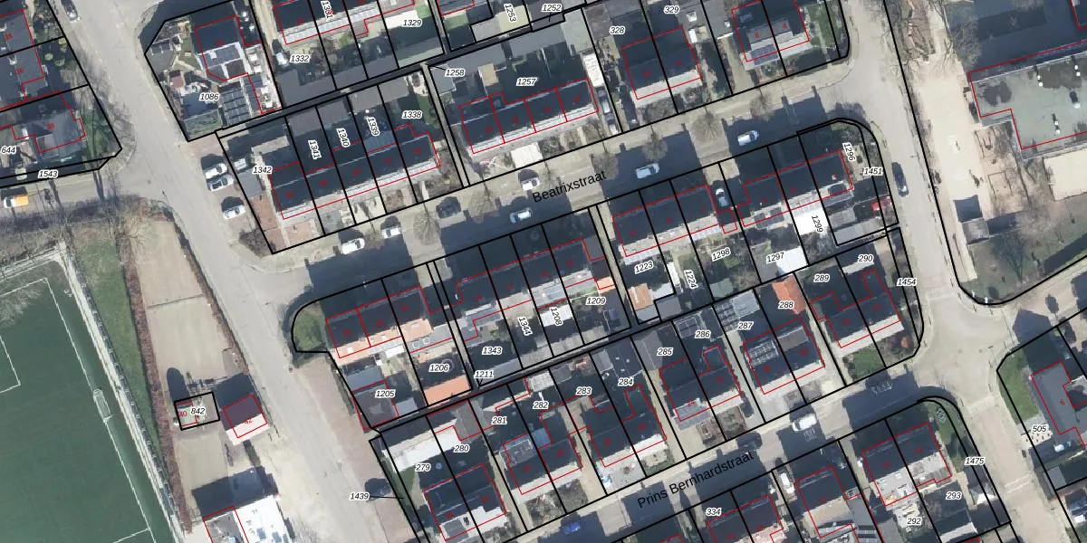 Het perceel waarop Beatrixstraat 15 staat heeft een oppervlakte van 145 m². Dit is een middelgroot perceel. De perceeloppervlakte wordt geregistreerd door het Kadaster. Gedetailleerde informatie over de maten van dit perceel kunt u vinden in het rapport Kadastrale kaart met maatvoering van Beatrixstraat 15.