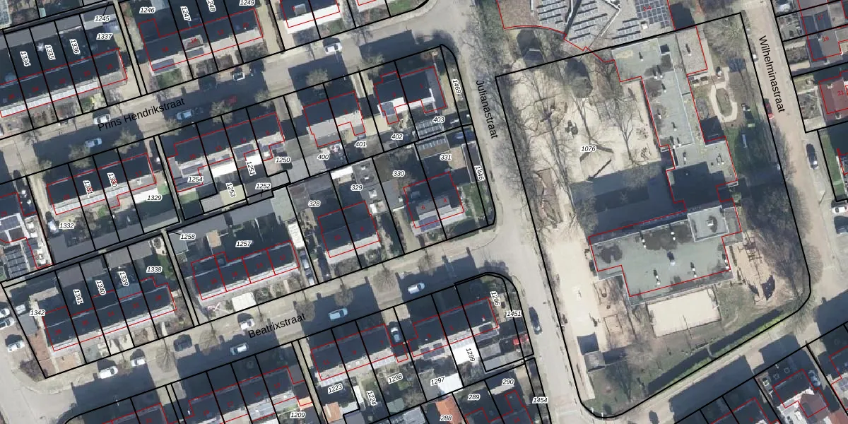 Gebruik de zoekbalk of klik op een perceel voor informatie over de adressen binnen dit perceel.