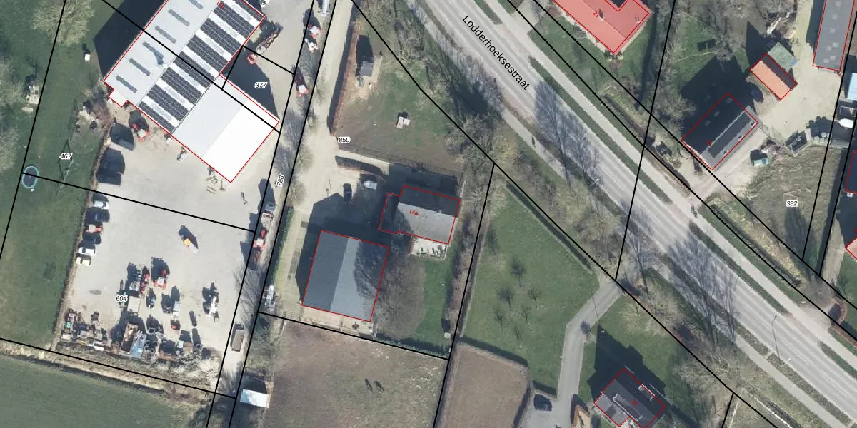Lodderhoeksestraat 14-a is gelegen op kadastraal perceel AGR00E850. Deze kadastrale aanduiding is uniek en wordt gebruikt door het Kadaster om eigendomsrechten en andere zakelijke rechten vast te leggen. Het perceel maakt onderdeel uit van de kadastrale gemeente Angeren.