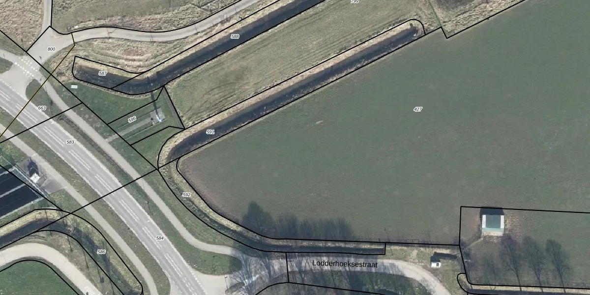 Het perceel waarop Lodderhoeksestraat 35-a staat heeft een oppervlakte van 1,2 ha. Dit is een zeer groot perceel. De perceeloppervlakte wordt geregistreerd door het Kadaster. Gedetailleerde informatie over de maten van dit perceel kunt u vinden in het rapport Kadastrale kaart met maatvoering van Lodderhoeksestraat 35-a.