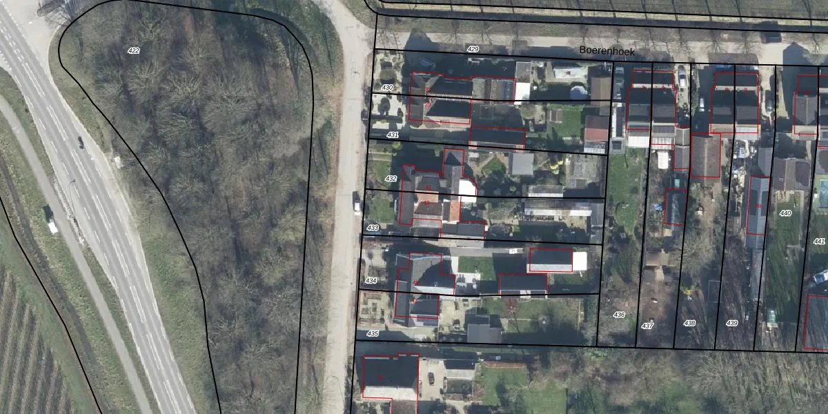 Gebruik de zoekbalk of klik op een perceel voor informatie over de adressen binnen dit perceel.