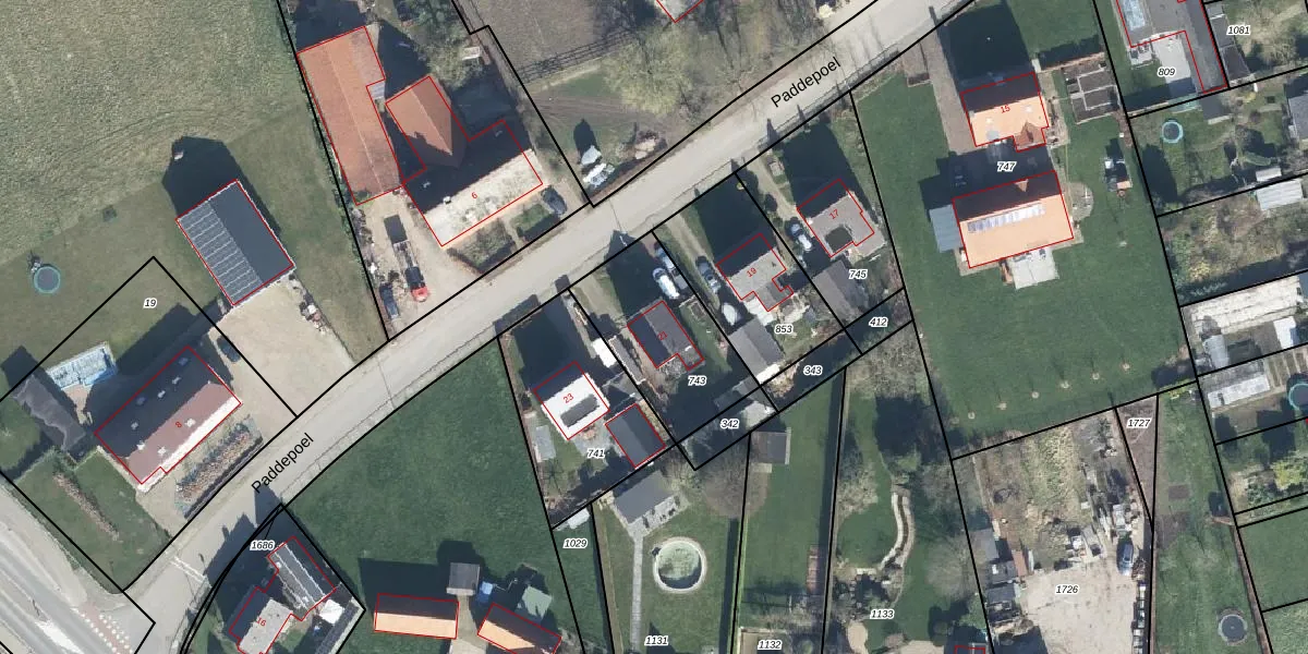 Paddepoel 21 is gelegen op kadastraal perceel AGR00D743. Deze kadastrale aanduiding is uniek en wordt gebruikt door het Kadaster om eigendomsrechten en andere zakelijke rechten vast te leggen. Het perceel maakt onderdeel uit van de kadastrale gemeente Angeren.