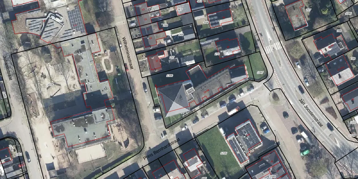 Het perceel waarop Prins Bernhardstraat 2-b staat heeft een oppervlakte van 1263 m². Dit is een zeer groot perceel. De perceeloppervlakte wordt geregistreerd door het Kadaster. Gedetailleerde informatie over de maten van dit perceel kunt u vinden in het rapport Kadastrale kaart met maatvoering van Prins Bernhardstraat 2-b.