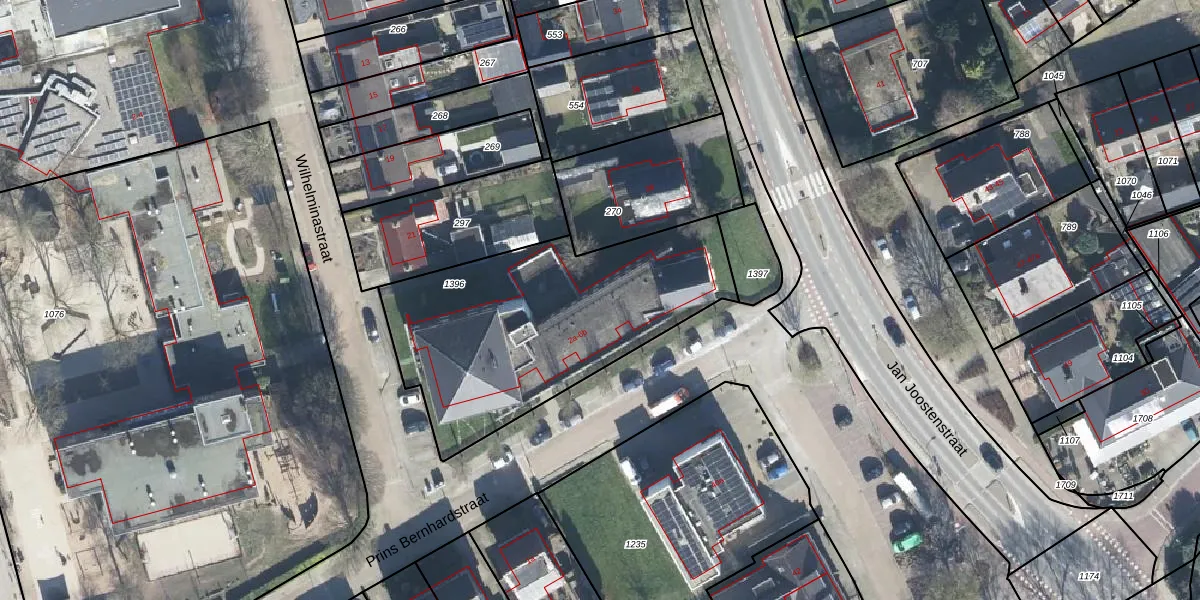 Het perceel waarop Prins Bernhardstraat 4-d staat heeft een oppervlakte van 1263 m². Dit is een zeer groot perceel. De perceeloppervlakte wordt geregistreerd door het Kadaster. Gedetailleerde informatie over de maten van dit perceel kunt u vinden in het rapport Kadastrale kaart met maatvoering van Prins Bernhardstraat 4-d.
