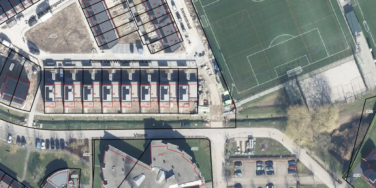 Gebruik de zoekbalk of klik op een perceel voor informatie over de adressen binnen dit perceel.