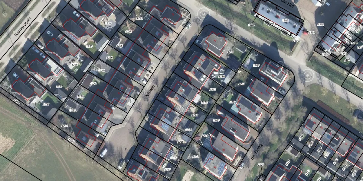 Het perceel waarop Viswei 47 staat heeft een oppervlakte van 245 m². Dit is een middelgroot perceel. De perceeloppervlakte wordt geregistreerd door het Kadaster. Gedetailleerde informatie over de maten van dit perceel kunt u vinden in het rapport Kadastrale kaart met maatvoering van Viswei 47.