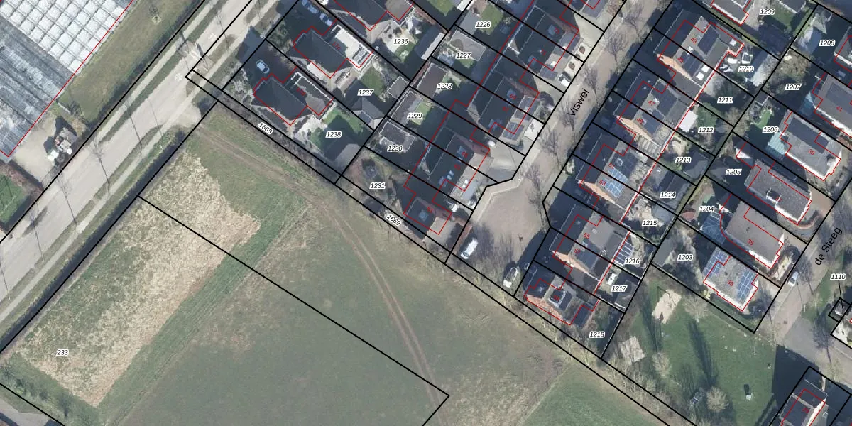 Het perceel waarop Viswei 61 staat heeft een oppervlakte van 304 m². Dit is een groot perceel. De perceeloppervlakte wordt geregistreerd door het Kadaster. Gedetailleerde informatie over de maten van dit perceel kunt u vinden in het rapport Kadastrale kaart met maatvoering van Viswei 61.
