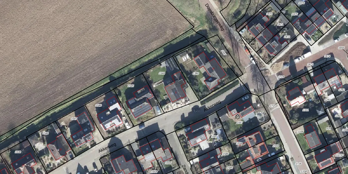Het perceel waarop Akkerweg 2 staat heeft een oppervlakte van 570 m². Dit is een groot perceel. De perceeloppervlakte wordt geregistreerd door het Kadaster. Gedetailleerde informatie over de maten van dit perceel kunt u vinden in het rapport Kadastrale kaart met maatvoering van Akkerweg 2.