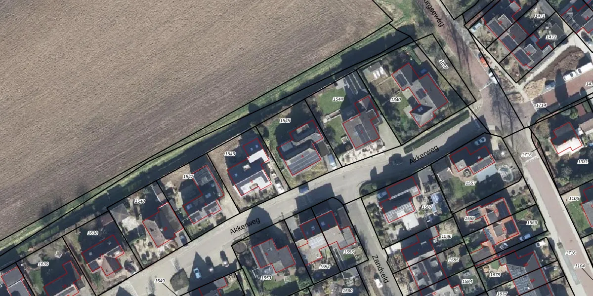 Gebruik de zoekbalk of klik op een perceel voor informatie over de adressen binnen dit perceel.