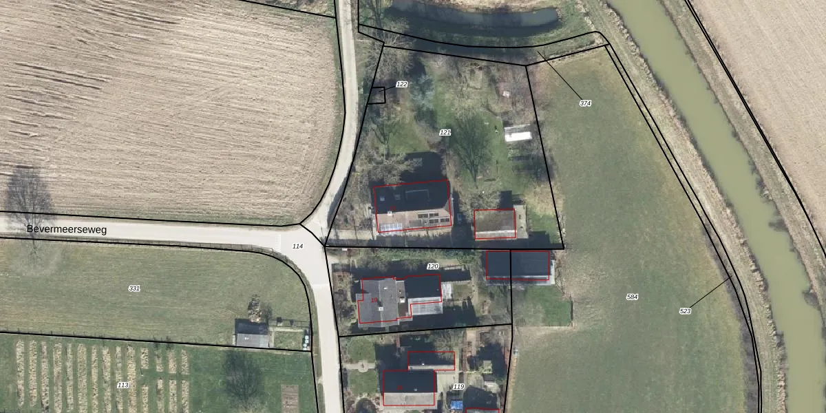 Bevermeerseweg 17 is gelegen op kadastraal perceel AGL00K121. Deze kadastrale aanduiding is uniek en wordt gebruikt door het Kadaster om eigendomsrechten en andere zakelijke rechten vast te leggen. Het perceel maakt onderdeel uit van de kadastrale gemeente Angerlo.