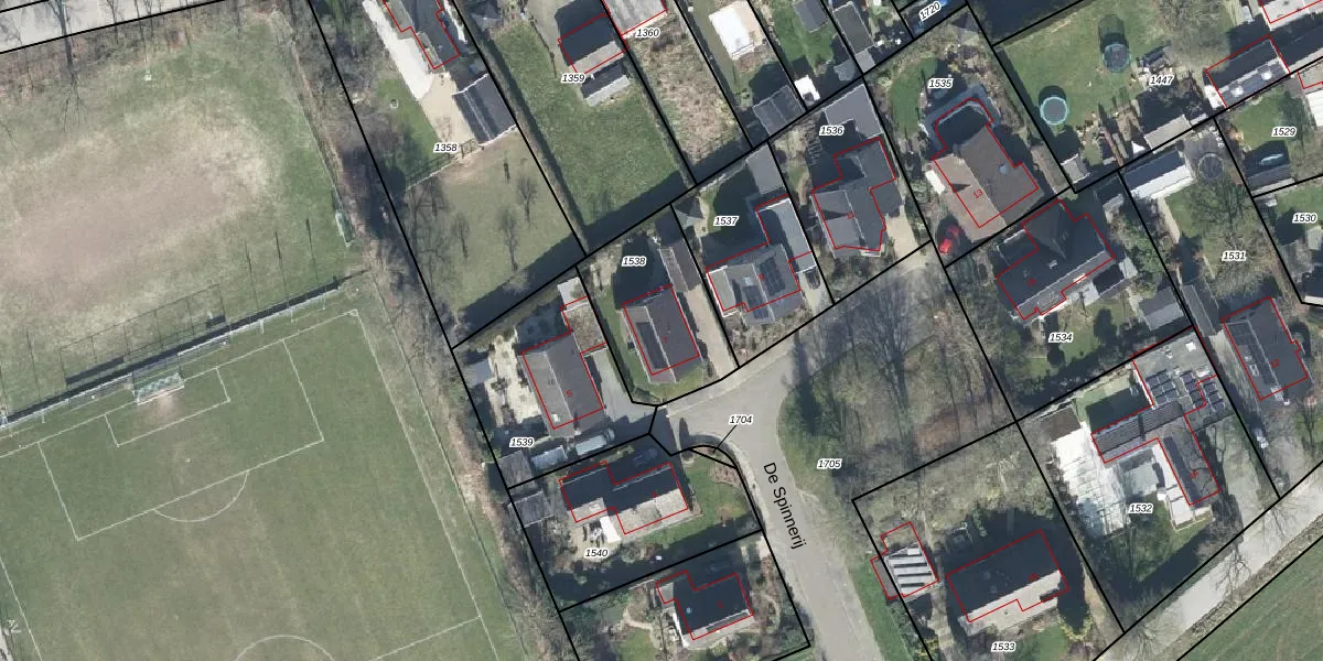 Het perceel waarop De Spinnerij 7 staat heeft een oppervlakte van 435 m². Dit is een groot perceel. De perceeloppervlakte wordt geregistreerd door het Kadaster. Gedetailleerde informatie over de maten van dit perceel kunt u vinden in het rapport Kadastrale kaart met maatvoering van De Spinnerij 7.