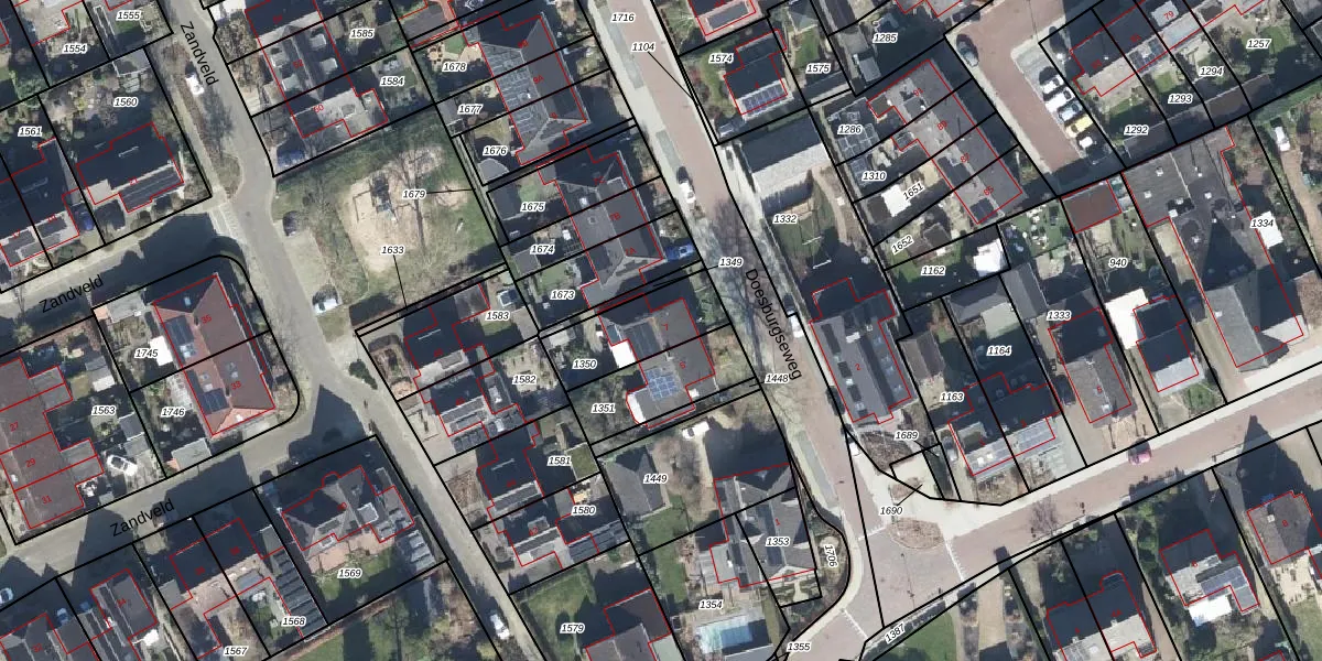 Gebruik de zoekbalk of klik op een perceel voor informatie over de adressen binnen dit perceel.