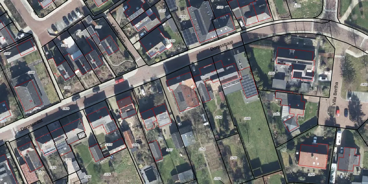Het perceel waarop Dorpsstraat 30 staat heeft een oppervlakte van 1200 m². Dit is een zeer groot perceel. De perceeloppervlakte wordt geregistreerd door het Kadaster. Gedetailleerde informatie over de maten van dit perceel kunt u vinden in het rapport Kadastrale kaart met maatvoering van Dorpsstraat 30.