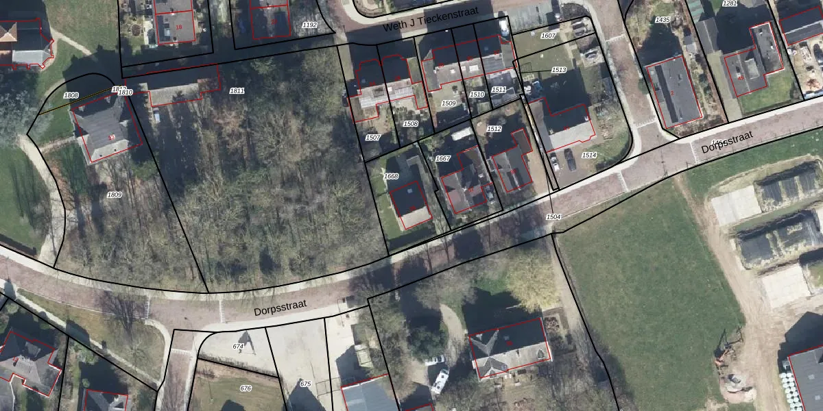 Gebruik de zoekbalk of klik op een perceel voor informatie over de adressen binnen dit perceel.